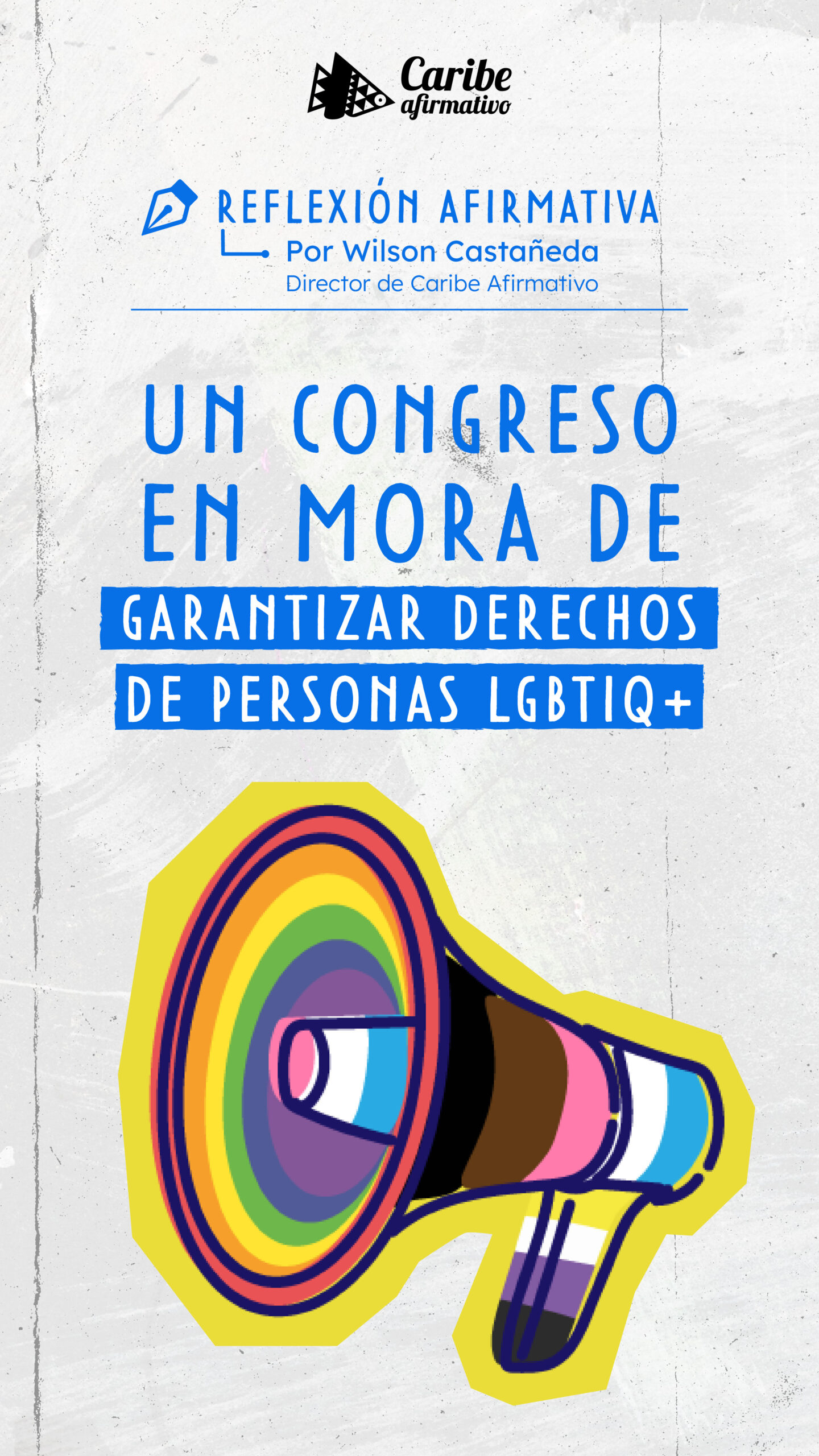 Caribe Afirmativo es una organización social que, desde el 2009, trabaja por la transformación de prejuicios, imaginarios y prácticas sociales e institucionales en torno a la diversidad sexual y de género a través de la implementación de estrategias integrales de investigación, formación, acompañamiento psicosocial, promoción de los derechos, acceso a la justicia, incidencia sociopolítica y el fortalecimiento de la organización y de sus aliados, con un enfoque comunitario y de trabajo en red que aporta a la construcción de paz en los territorios