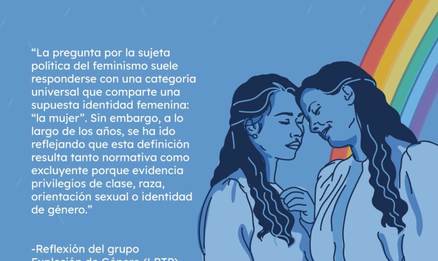 Es allí donde se fundamentan las críticas de que el campo de acción del movimiento no puede reducirse a la mujer clase media/alta, blanca, heterosexual y cisgénero. Por lo anterior, urge que el movimiento feminista sea una esfera abierta no solo para “la mujer” sino para todas las mujeres sin importar las intersecciones que atraviesen sus cuerpos. Es imposible definir de forma única, estática y coherente lo que se entenderá por la categoría de sujeta del feminismo porque no se puede definir lo indefinible. El diálogo y la conversación debe permanecer siempre abierta en aras de acoger la heterogeneidad, las fisuras, rupturas y divisiones.