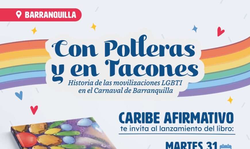18 de enero de 2023. En el marco de la conmemoración de los 41 años del Carnaval LGBTIQ+, el próximo 31 de enero a las 5:00 p.m. la Casa del Carnaval será epicentro de la presentación de ‘Con polleras y en tacones: historia de las movilizaciones LGBTIQ+ en el Carnaval de Barranquilla’, una publicación de Caribe Afirmativo que recoge la historia del Carnaval LGBTIQ+ en la ciudad y da cuentas de cómo este espacio ha sido un lienzo en el cual las personas sexo-género diversas pintan en el espacio público su orgullo reivindicación, dignidad y resistencia.