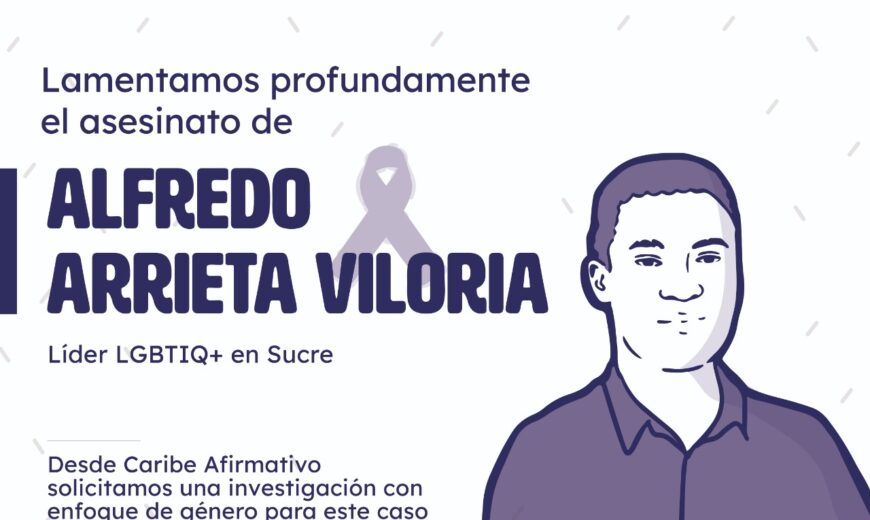 25 de enero de 2023. Ayer la violencia acabó con la vida de Alfredo Arrieta Viloria, un hombre abiertamente gay y líder en el corregimiento de Cienaguita, municipio de Toluviejo, en el departamento de Sucre. En Caribe Afirmativo recibimos la noticia con profunda conmoción, pues Arrieta Viloria fue una persona aliada a nuestra organización y trabajó de la mano de nosotras durante los primeros años de la consolidación de nuestro Observatorio de Derechos Humanos.