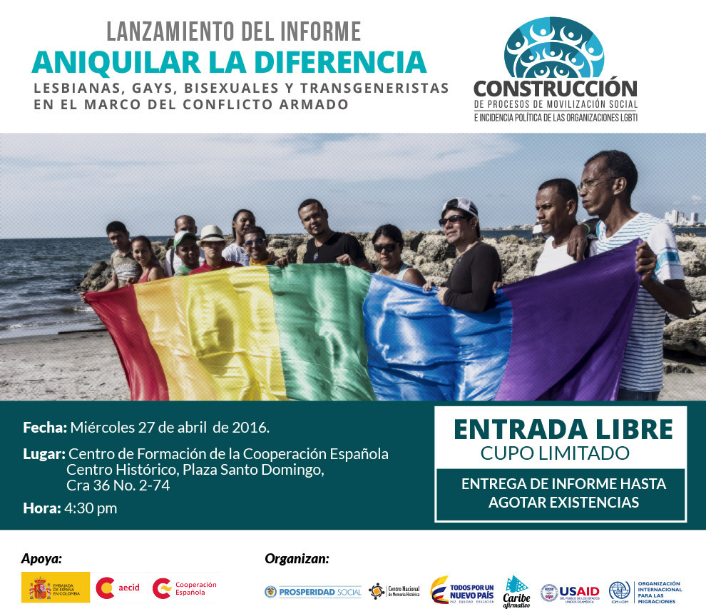 El lanzamiento del libro ‘Aniquilar la diferencia’ se realizará en el Centro de Formación de la Cooperación Española de la capital de Bolívar. Víctimas LGBTI de los Montes de María, cuyas historias hacen parte del informe, asistirán al evento. Este miércoles 27 de abril se lanza en Cartagena el informe ‘Aniquilar la diferencia’ del Centro […]