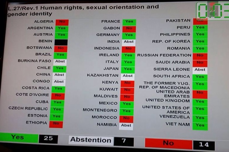 El Consejo de los Derechos Humanos adopta una resolución sobre “Derechos Humanos, Orientación Sexual e Identidad de Género” donde Colombia fue copatrocinador de esta disposición.