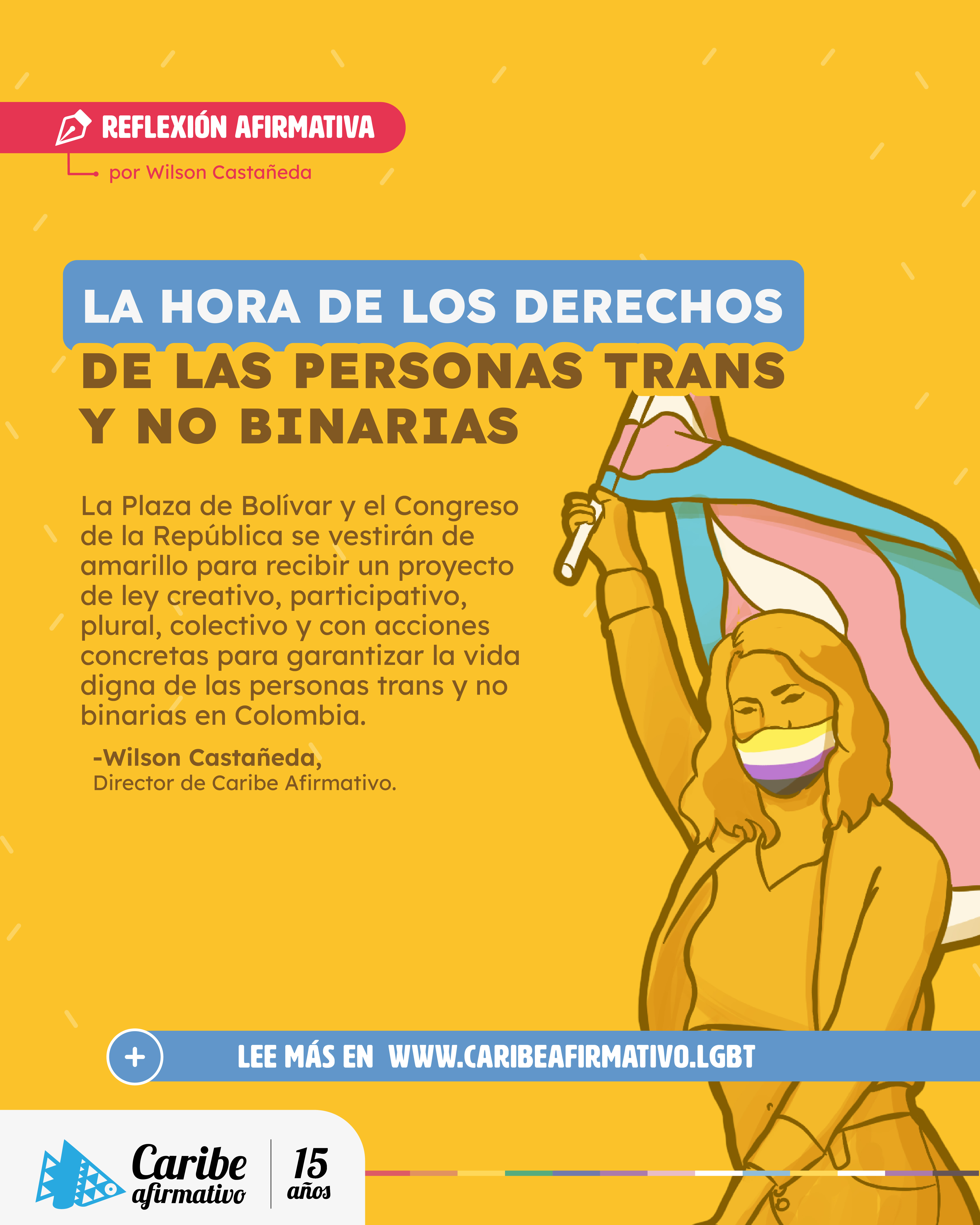 La Plaza de Bolívar y el Congreso de la República se vestirán de amarillo para recibir un proyecto de ley creativo, participativo, plural, colectivo y con acciones concretas para garantizar la vida digna de las personas trans y no binarias en Colombia. En las últimas cuatro décadas, los países democráticos han visto el crecimiento y […]