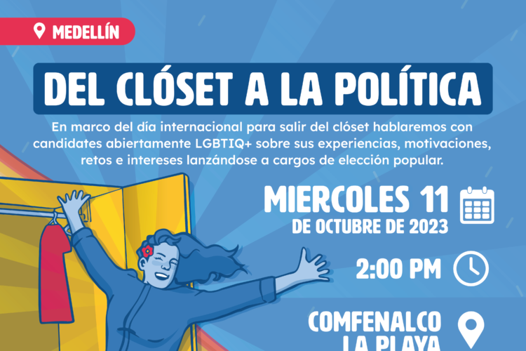 Este miércoles 11 de octubre, cerca de 30 candidaturas LGBTIQ+ se reunirán en el auditorio Comfenalco La Playa, a partir de las 2:00 p.m. para conversar sobre sus experiencias, retos y desafíos en el marco de su campaña electoral. 09 de octubre de 2023. En aras de seguir trabajando desde la sociedad civil por la […]