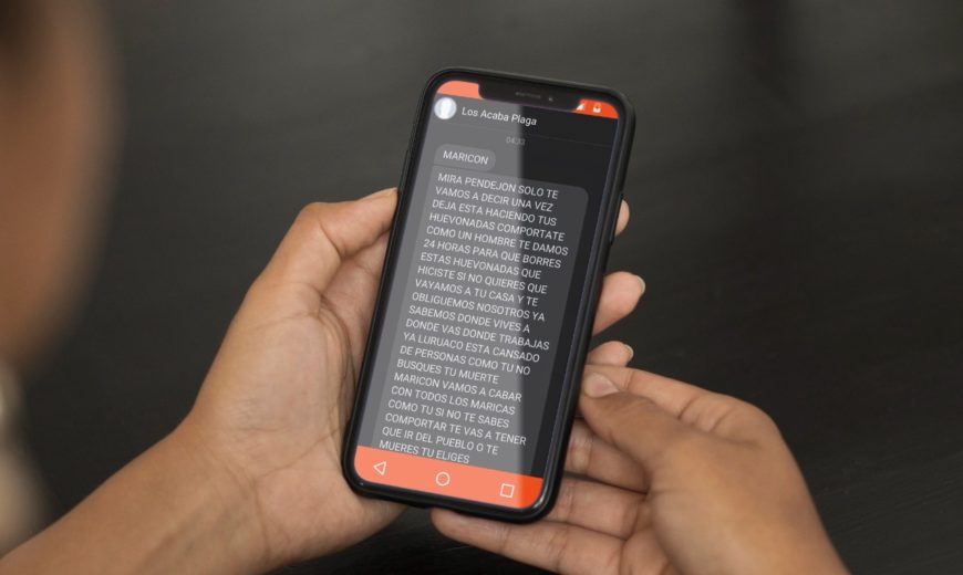 “Maricón, (…) sólo te lo vamos a decir una vez. Deja de estar haciendo tus huevonadas compórtate como un hombre. Te damos 24 horas para que borres estas huevonadas que hiciste”.