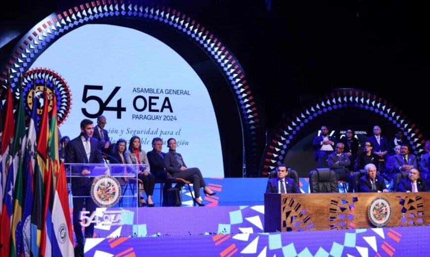 08 de agosto de 2024. Del 26 al 28 de junio, la ciudad de Asunción, Paraguay, fue sede de la 54 Asamblea de la Organización de los Estados Americanos (OEA), un evento que reunió a representantes de los países del continente para discutir y debatir sobre temas cruciales para la región. En esta ocasión, el tema central fue Integración y Seguridad para el desarrollo sostenible de la región.
