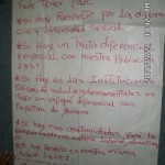 A Amor Por La Vida le han pasado muchas cosas, ustedes si saben que en el principio de la creación del servicio, fuimos víctimas de un robo, un robo brutal, porque fue un saqueo, un vandalismo, se llevaron las carpas acabaron con todo, se llevaron hasta las cosas de mi bebé, después de eso, si ha habido panfletos amenazantes porque todo el que llega al servicio comunitario es portador del VIH, ahí están los sidientos y eso es un factor de violencia, en ese mismo momento estoy siendo víctima de amenazas, pues uno quisiera hablar públicamente y decir, cosas, pero desafortunadamente no se puede, porque desafortunadamente aquí aunque estamos tratando y estamos luchando porque haya una unidad, haya un respeto e igualdad eso todavía tal vez aquí no va a ser posible, entonces necesitamos más unión unirnos mancomunadamente para hacer todo este tipo de eventos y sobre todo para hacer este tipo de denuncias de estas, ustedes saben que no podemos ir a decir fue qué, fue qué, el fuequeísmo, tenemos que ir directamente con cosas concretas, pero sinceramente si el servicio comunitario Amor Por La Vida en este instante hoy 27 de mayo de 2014, en este taller por la paz si somos víctimas, hemos sido víctimas de panfletos, nos están diciendo fuera de aquí sidientos, dejen de meterse tanto, Maricones, etc. Etc. etc. y no todos aquí tienes los pantalones para parase y decir lo que está pasando, porque no es fácil, por ejemplo en el caso mío yo tengo una familia a quien proteger, ustedes también tiene una familia y tenemos que cuidarnos entre nosotros mismos, y aquí si yo denuncio públicamente ante el Observatorio de Caribe Afirmativo con nuestro aliando Wilson Castañeda, estamos diciendo que sí somos víctimas del conflicto armado, amenazas, víctimas de la homofobia y la transfobia, y del odio de muchos sectores de este municipio, desafortunadamente pues vea aquí nos sentimos desprotegidos, nosotros hicimos lo posible porque vinieran representantes del municipio y aquí no vemos a nadie, pero no nos vamos a dejar intimidar por esos panfletos y esas amenazas, seguimos luchando, y pues compañeros unidos somos más.