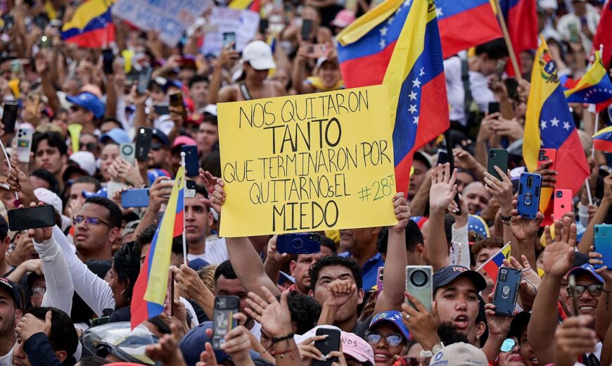 16 de agosto de 2024. Tras el anuncio del Consejo Nacional Electoral de Venezuela, que dio como ganador a Nicolás Maduro en los comicios presidenciales el pasado 28 de julio, miles de personas han salido a las calles a protestar ante lo que consideran un fraude. A raíz de esto, se han venido realizando protestas por parte de opositores quienes se han tenido que enfrentar a una fuerte arremetida por parte de organismos estatales, dejando un saldo de 24 personas muertas y más de 2000 detenidas bajo acusaciones de “promover el terrorismo”.
