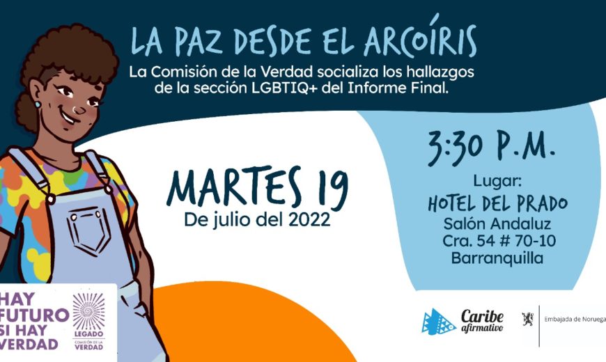 18 de julio de 2022. Mañana 19 de julio a las 3:30 pm en el Salón Andaluz en el Hotel el Prado en la ciudad de Barranquilla, la Comisión de la Verdad en cabeza de las comisionadas Alejandra Miller y Marta Ruíz y el padre Francisco de Roux presentarán los hallazgos sobre las violencias que vivieron las personas LGBTI en el marco del conflicto, armado que hace parte del Volumen de Género del Informe Final que se publicará esta semana.