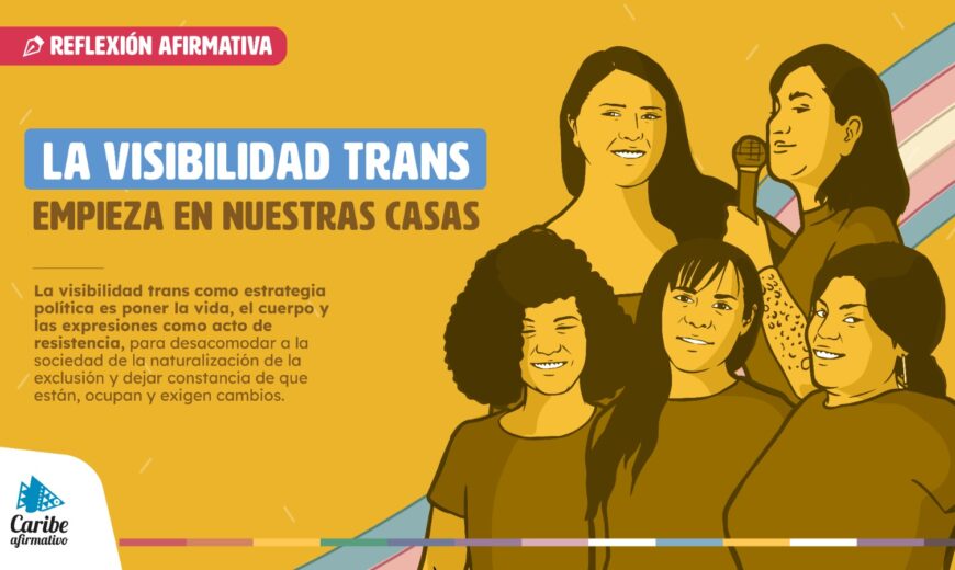“Es momento de que la sociedad reconozca que las mujeres trans también tenemos derecho a vivir libremente y que nos reconozcan tal como somos. Es por eso que invito a todas las mujeres trans a que se reconozcan tal como son y luchemos por un país donde podamos ser libres, sin ser víctimas de la transfobia. En esta lucha, la visibilidad trans ha sido durante mucho tiempo una fecha que nos convoca a ser visibles y exigir ser aceptadas, valoradas, respetadas y reconocidas como personas. Esta lucha, desde Caribe Afirmativo, la enunciamos a diario y constantemente, con el fin de trabajar hasta lograr ser aceptadas en todos los espacios y que nuestras vidas, cuerpos y expresiones se respeten en la sociedad. Nos levantamos para ser visibles y luchar hasta que no haya más discriminación y transfobia hacia las personas con experiencias de vida trans”.