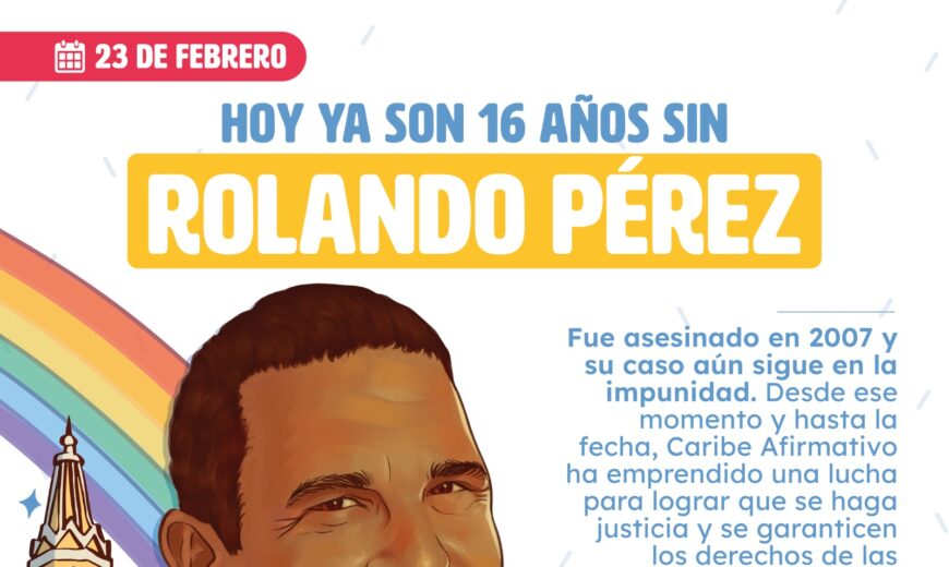 El homicidio de Rolando Pérez, la indignación y la necesidad de justicia reavivó la lucha por los derechos de las personas LGBTIQ+ en el Caribe y el resto del país, dando lugar a la creación de Caribe Afirmativo. Desde nuestra organización no hemos parado de exigir justicia y hemos llevado su caso hasta la Comisión Interamericana de Derechos Humanos (CIDH) en el 2011 y 2014 y, en ambas ocasiones, la Comisión le ha pedido actuación contundente al Estado colombiano, que responde con la reapertura en el caso en la Fiscalía, pero vuelve a ser dejado a la desidia.
