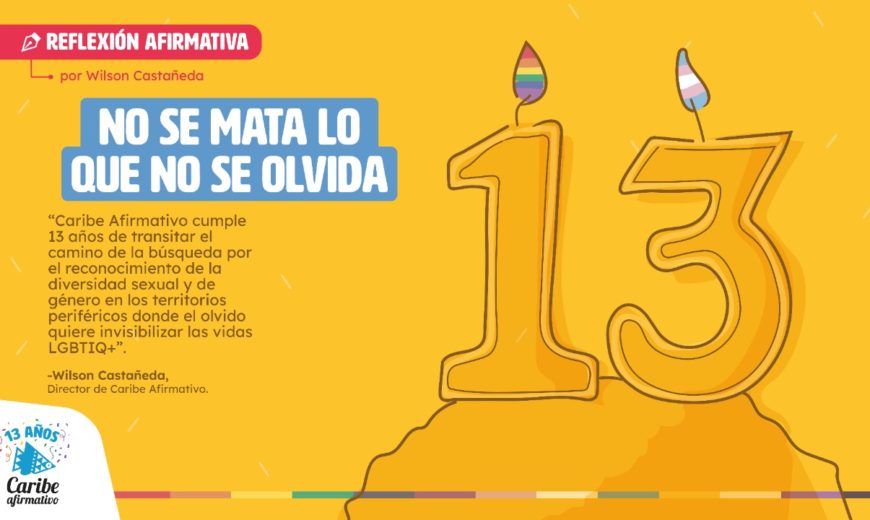 Caribe Afirmativo cumple 13 años de transitar el camino de la búsqueda por el reconocimiento de la diversidad sexual y de género en los territorios periféricos donde el olvido quiere invisibilizar las vidas LGBTIQ+