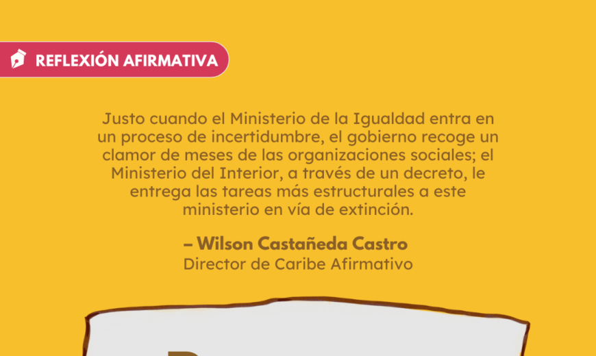 1. Las agendas poblacionales, antes del Ministerio de la Igualdad, estaban o en este Ministerio o en las Consejerías. Hoy, a pesar del nuevo ministerio y como un ejercicio tranquilo de arranque, siguen las Consejerías y direcciones como las de los asuntos de comunidades negras, afrocolombianas, raizales y palenqueras. Aunque no existía antes una estructura tan puntual en asuntos LGBTIQ+, en el Ministerio del Interior se retiró todo lo que había, reduciéndolo solo a Derechos Humanos y cancelando las demás funciones, dejando mayor responsabilidad en el nuevo ministerio.