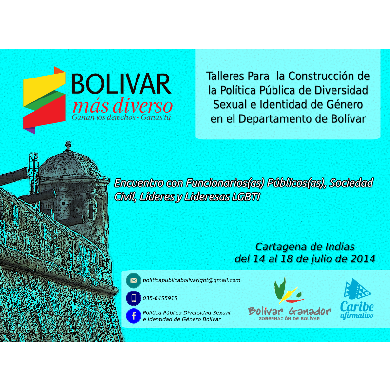 La Gobernación de Bolívar y la Corporación Caribe Afirmativo han sido los promotores para el proceso de construcción e implementación de una Política Pública que garantice los derechos de las personas lesbianas, gays, bisexuales, trans e intersex, acogiendo el compromiso del Plan de Desarrollo “Bolívar Ganador, 2012 – 2015” del Departamento de Bolívar.