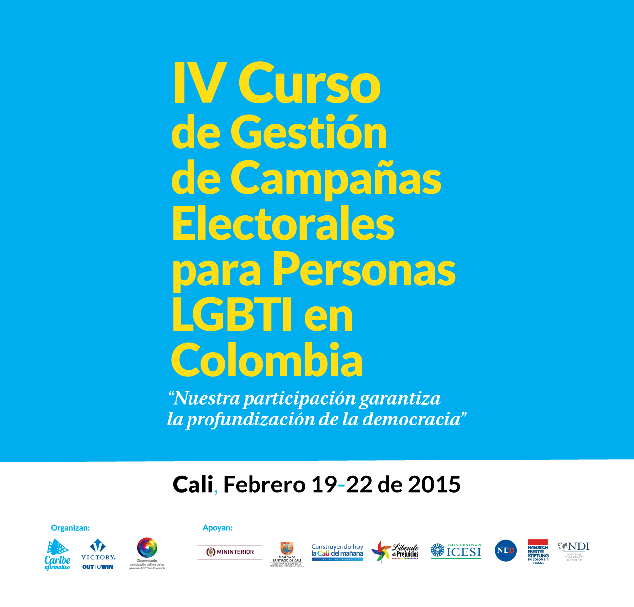 La Corporación Caribe Afirmativo, en asocio con Victory Institute en el marco del Observatorio de Participación Política de personas LGBTI y con el apoyo de la Universidad ICESI, la Alcaldía de Cali, el Ministerio del Interior, y con el acompañamiento de NDI y FESCOL les invita al conversatorio: “personas LGBTI profundizando la democracia para obtener la igualdad real”.