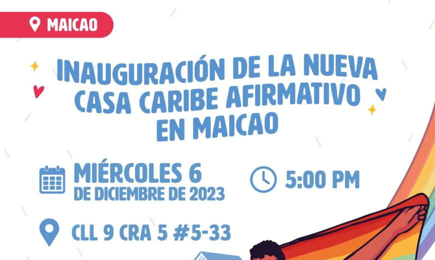 06 de diciembre de 2023. En vísperas de la temporada navideña, nos complace celebrar este significativo acontecimiento, tanto para la organización, como para el municipio de Maicao, La Guajira, siendo este el epicentro de la inauguración de nuestra nueva Casa Caribe Afirmativo, desde donde seguiremos trabajando por los derechos de las personas LGBTIQ+, desde el norte, hasta el resto del departamento. Las puertas de nuestra casa se abrirán este miércoles a partir de las 5:00 p.m., en la calle 9 # 5 – 33, espacio en el que todas las personas serán bienvenidas para conocer el trabajo que hemos realizado desde hace más de 13 años en el municipio, y que seguiremos desarrollando durante muchos años más.